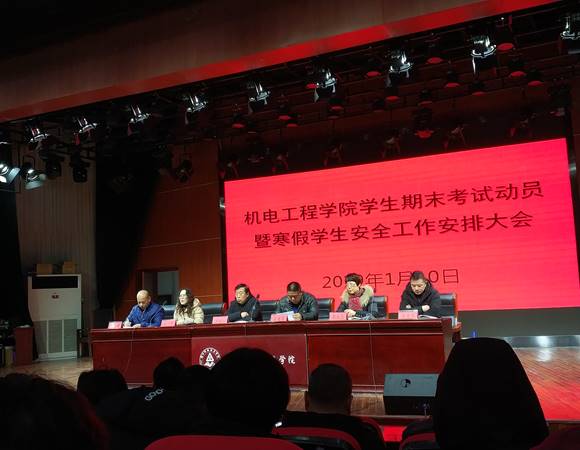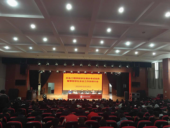 2019年1月10日上午,机电工程学院在砺德厅召开全院学生期末考试动员大会暨寒假学生安全工作安排大会。