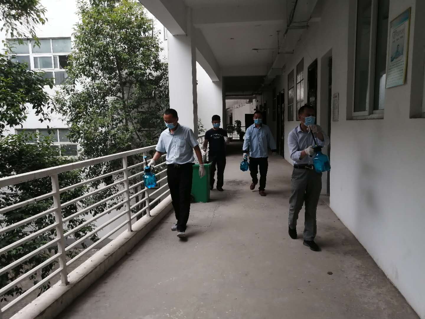 为迎接学生返校复学,给学生创造一个良好、安全的学习环境,2020年5月20上午,十大买球官方网站组织部分辅导员对教室、过道、走廊进行消毒工作。