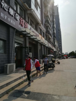 7月7日,天气酷热,院长严胜利、副院长齐俊平带领25名志愿者,顶着烈日和高温进入许寨社区开展创卫活动。按照小组分工,定点落实到人的方法,除志愿服务岗外、其他老师巡回清理社区周围和院内的烟蒂、纸屑、饮料瓶、塑料袋等生活垃圾。在值岗过程中,规劝车辆不文明停放问题10人次,规劝社区门店不文明经营行为2次,清理卫生死角20余处。