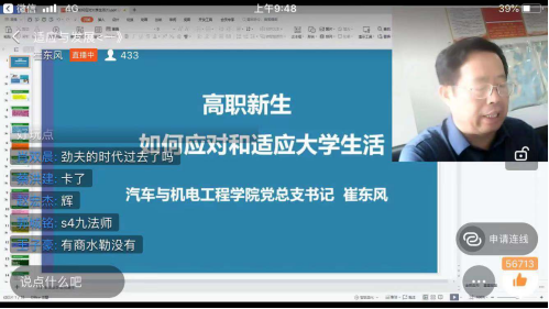 课中,崔东风书记主要从高职新生如何应对大学生活和高职新生如何适应大学生活两大方面与新生们进行了学习和探讨。
