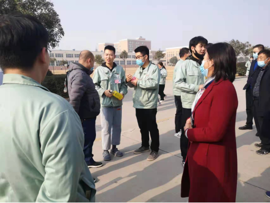 严胜利、崔东风、齐俊平等一行人,首先来到开封住成有限公司的生产基地,认真听取了公司负责人田明部长对汽车线束生产情况和十大买球产教融合学生的生产工作、生活情况的介绍。随后严胜利、崔东风、齐俊平等一行人又在公司看望所有产教融合学生,同公司领导一起与同学们进行互动式交流谈话。严胜利、崔东风、齐俊平等一行人认真听取学生们在开封住成公司产教融合过程中的学习、工作、生活情况汇报,详细询问了学生们碰到的问题、困难和想法,对同学们的工作给予了充分肯定,希望同学们能珍惜在开封住成公司实习的良好工作机会,勇于吃苦探索并坚持下去,尽量把所学理论知识与实践相结合,学以致用,做到在“做中学,学中做,教、学、做一体化”。对同学们提出的有关工资、福利、待遇等问题,严胜利、崔东风、齐俊平等一行人立即与公司领导现场办公,商议解决思路和具体操作步骤,并表示学院会尽一切力量与公司共同努力设法帮助解决。