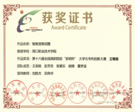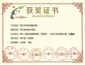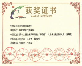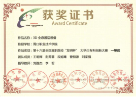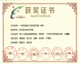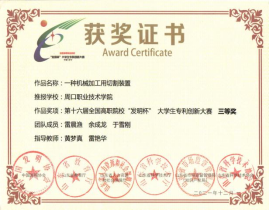 为培养大学生创新实践能力,营造良好的科技创新氛围,十大买球官方网站参加第十六届全国高职院校“发明杯”大学生专利创新大赛,并荣获一等奖。
