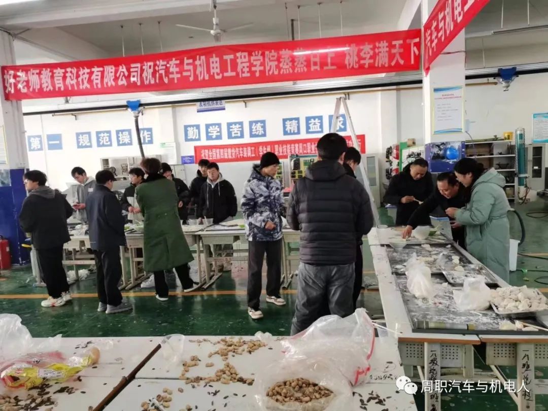 1221日下午十大买球官方网站师生在汽车实训中心组织情暖冬至师生联谊活动。学院领导崔东风书记带领学生管理工作老师们,深入到同学们中间,和同学们一起包饺子、煮饺子。全体师生们在欢声笑语中,在赞美温馨中,在相互嬉闹中,度过了一个温暖、爱心和难忘的一个夜晚。
