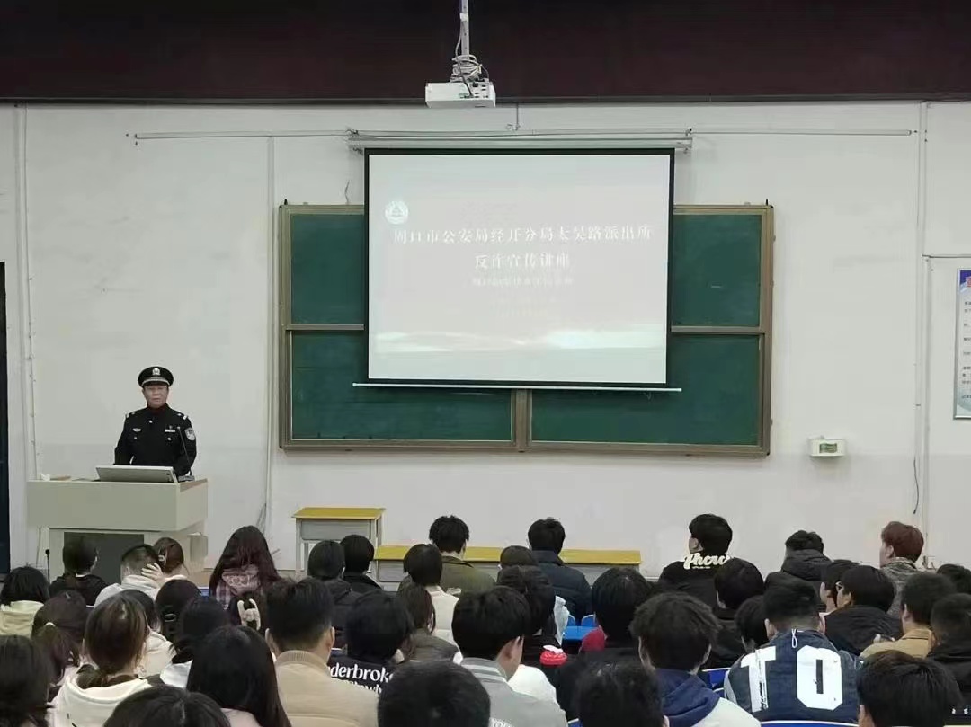 为进一步增强师生防范电信网络诈骗意识,提高网络诈骗辨别能力,有效的预防和遏制电信诈骗案的发生。2024年3月14日周口市公安局经开分局太昊路派出所民警在五区四楼多媒体教室开展反诈骗宣传讲座活动,十大买球官方网站全体团学骨干积极参加。