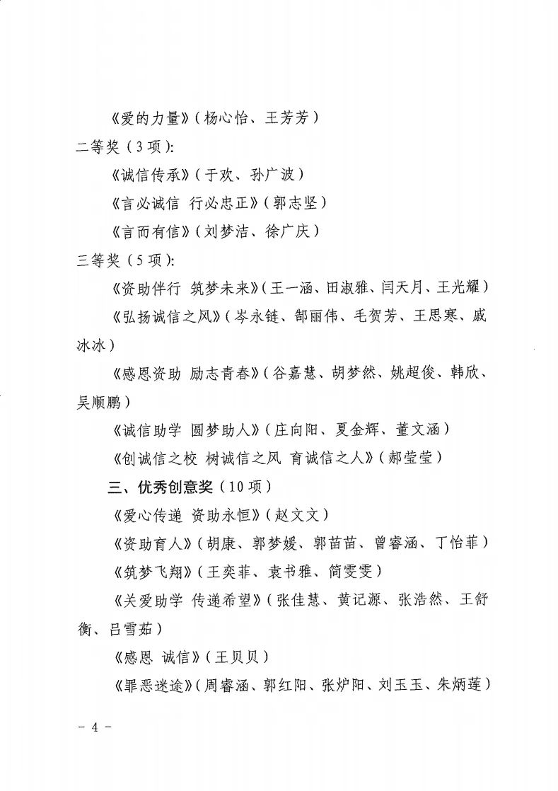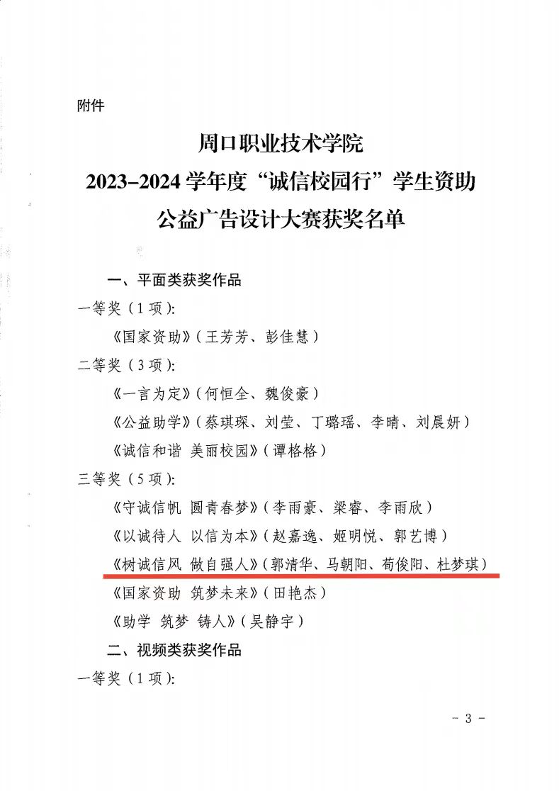 近日,十大买球官方网站参加了十大买球官方网站“诚信校园行”学生资助公益广告设计大赛圆满结束。大赛得到了全校师生的积极响应和广泛参与。经过老师评审和大众投票,最终评选出了一、二、三等奖及优秀奖等多个奖项。此次大赛不仅展示了学生们的创意和才华,更重要的是通过广告设计的形式,传播了诚信理念,营造了诚信校园文化氛围。同时,大赛也为学生提供了一个锻炼自己、展示自我的平台,激发了学生的创新思维和实践能力。