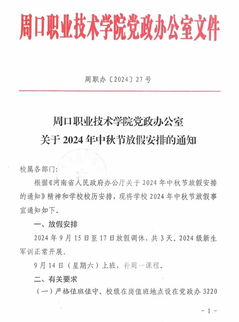 中秋节放假通知