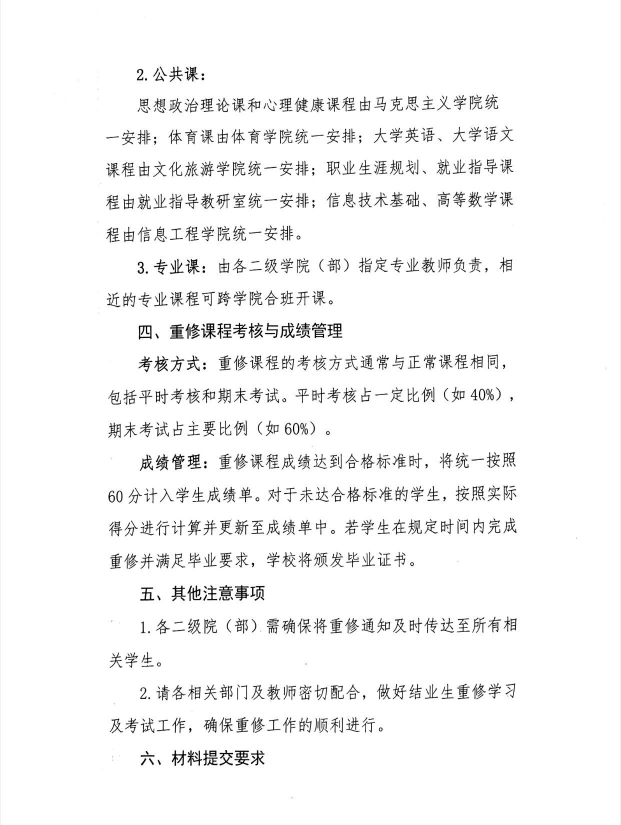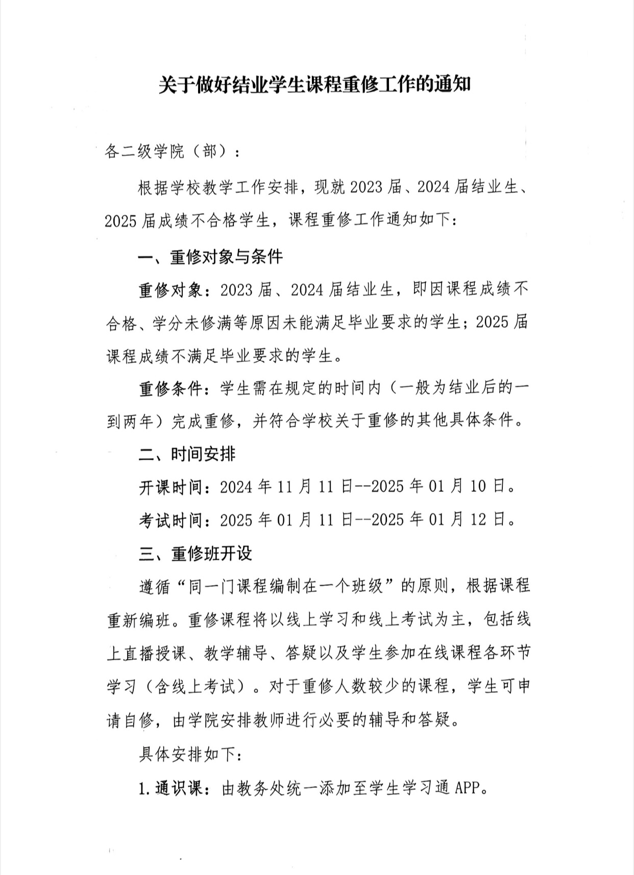 关于做好结业学生课程重修工作的通知