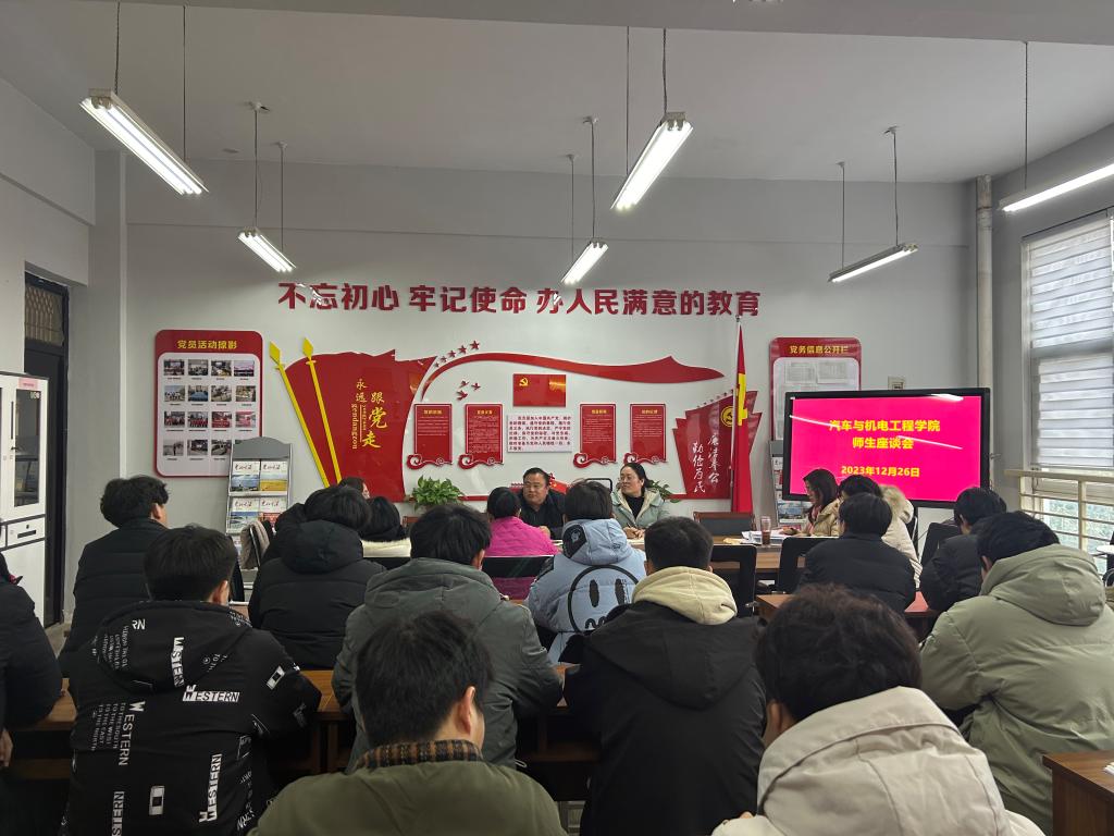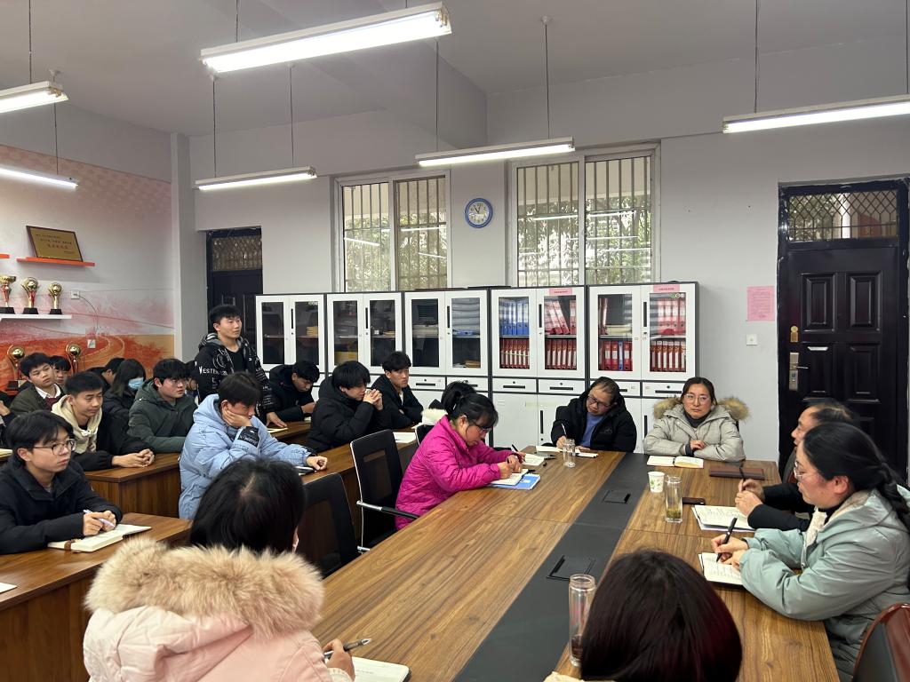 2023年12月26日下午,十大买球官方网站在党员活动室召开师生座谈会,院长李向前、教办主任丁兰花、教研室主任、实训中心主任、教学信息员及各班学生代表参加座谈会,会议由丁兰花主持。