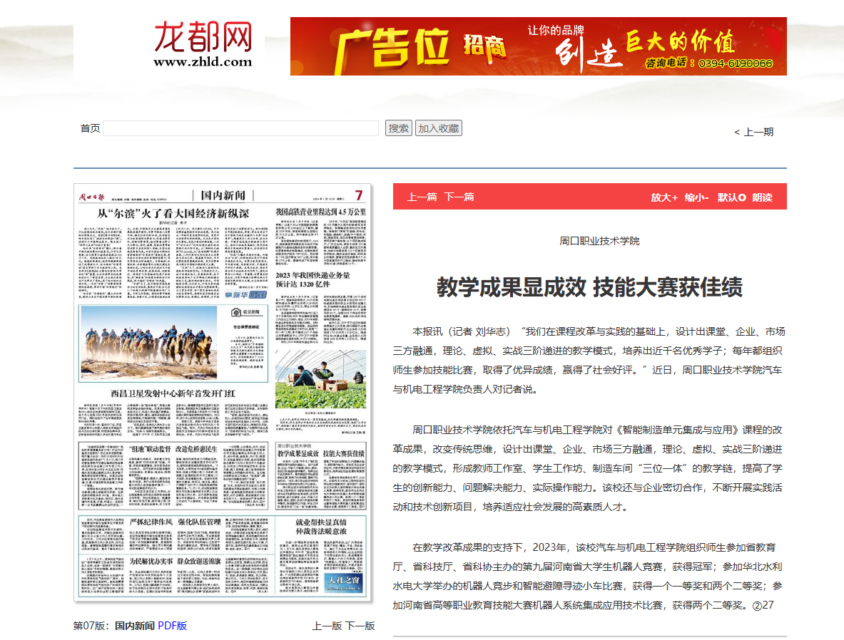 在教学改革成果的支持下,2023年,该校十大买球官方网站组织师生参加省教育厅、省科技厅、省科协主办的第九届河南省大学生机器人竞赛,获得冠军;参加华北水利水电大学举办的机器人竞步和智能避障寻迹小车比赛,获得一个一等奖和两个二等奖;参加河南省高等职业教育技能大赛机器人系统集成应用技术比赛,获得两个二等奖。