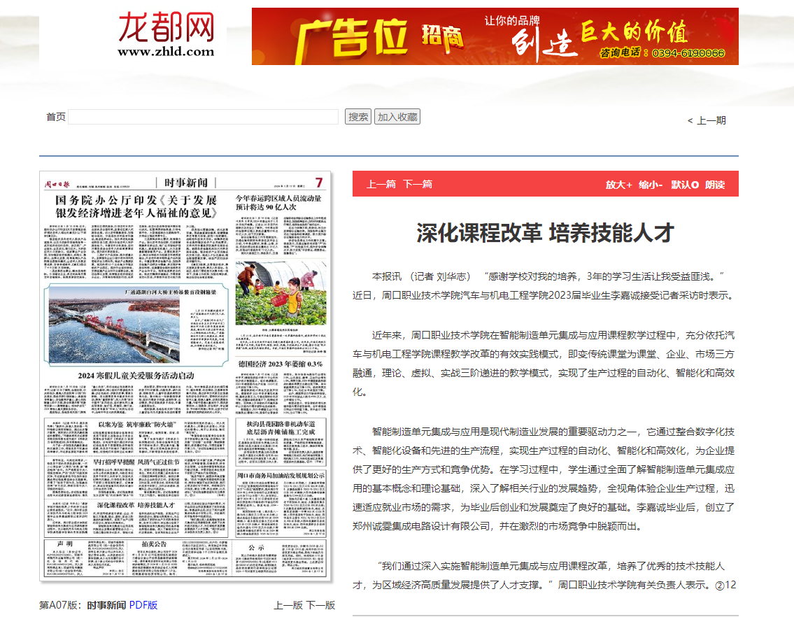 【周口日报】十大买球官方网站:深化课程改革 培养技能人才