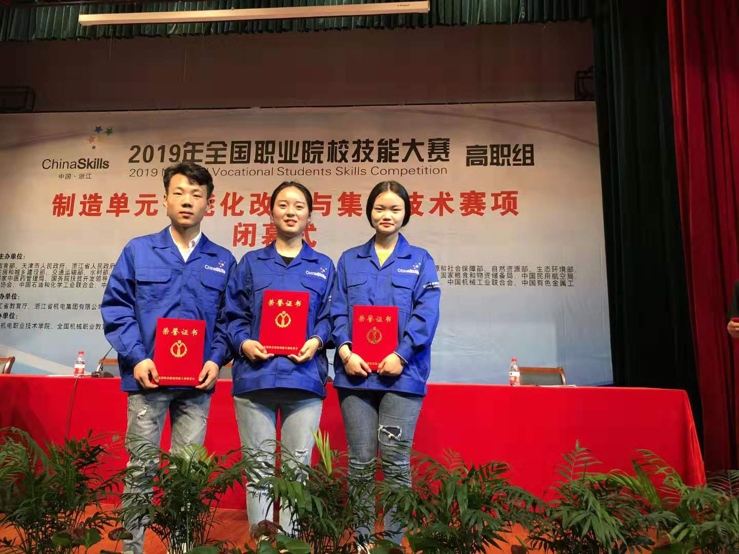 2019年6月2日,第十二届全国职业院校技能大赛成绩揭晓,十大买球官方网站参赛队再创佳绩,麻静怡,王蒙佳,刘进三名学生,在严胜利院长和张昭晗老师的精心指导下,代表河南省参加的“制造单元智能化改造与集成技术”项目,获得国赛三等奖。
