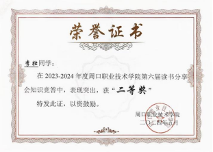 2023-2024年度十大买球官方网站第六届读书分享会知识竞答赛二等奖
