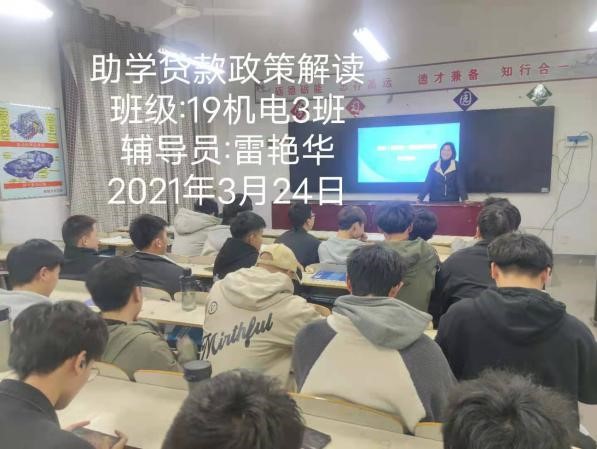 为让广大学生了解和掌握国家资助政策,2021年3月23日-3月24日,按照学校学生处要求十大买球组织学生召开“奋进新时代,周职周周讲”第四十七期——“高校助贷把梦圆安全伴我在校园”主题班会。