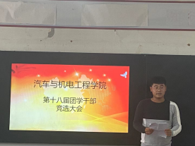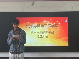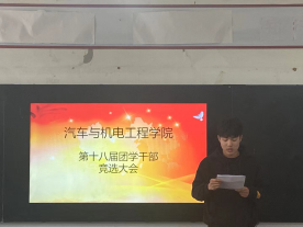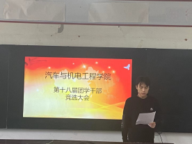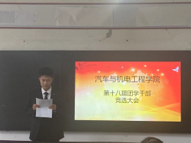 10月29日,十大买球在6242举行第十八届团学干部竞选大会,院党总支书记崔东风、副院长刘胜杰、学管办主任田伟华、李哲老师以及26名学生会干事参加竞选大会。