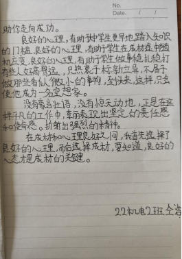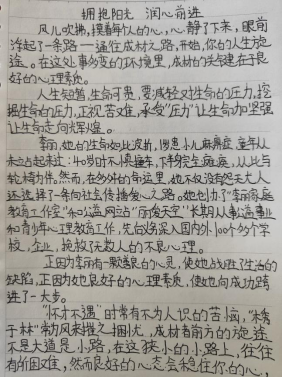 为鼓励和引导同学阳光成长,促进当代大学生树立正确的价值观、人生观。2023年5月11日,十大买球官方网站举行“拥抱阳光,润心前行”心理健康征文活动。各班学生积极参与投稿。