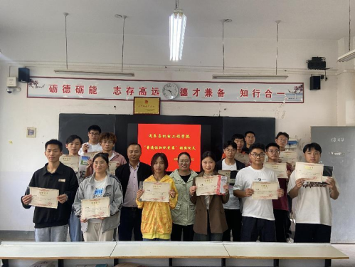 首先,教学办主任丁兰花宣读了25名获奖人员名单:一等奖5名,二等奖8名,三等奖12名。随后,副院长田伟华、教学办主任丁兰花为获奖同学颁发荣誉证书和奖品并合影留念。