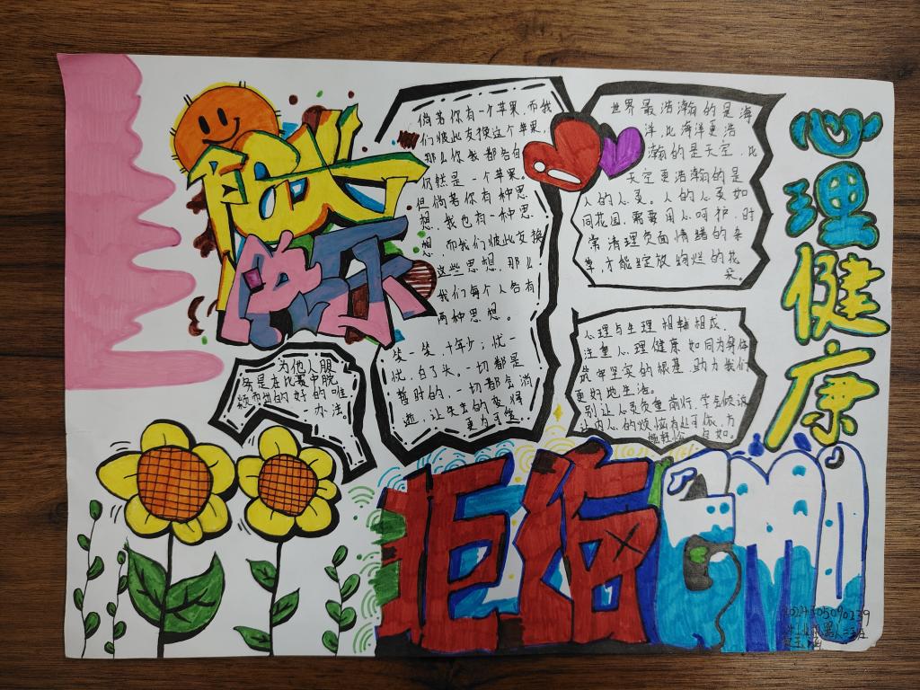 活动期间,同学们热情高涨,全身心投入创作。他们自主查阅各类心理健康资料,相互交流探讨创作思路。以画笔为工具,以画纸为舞台,围绕情绪管理、压力释放、自我认知等心理健康主题精心构思。有的同学为了画好一个表达情绪调节的画面,反复修改草图;有的则和其他同学热烈讨论文字内容的排版。有的用细腻的笔触勾勒出温馨治愈的场景,传递积极乐观的心态;有的配上简洁有力的文字,科普实用的心理调适方法。一份份手抄报不仅是艺术创作,更是同学们内心对心理健康思考的直观呈现。
