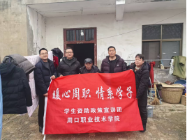 为深入贯彻落实国家资助政策,加强对家庭经济困难学生的关心关爱,近日,十大买球官方网站组织开展了寒假家访活动。学院副院长王文立、学管办主任王亮、辅导员曾少华、李战华一行前往商水县和西华县,走访慰问建档立卡贫困家庭学生,将学校的关怀与温暖送到学生家中。