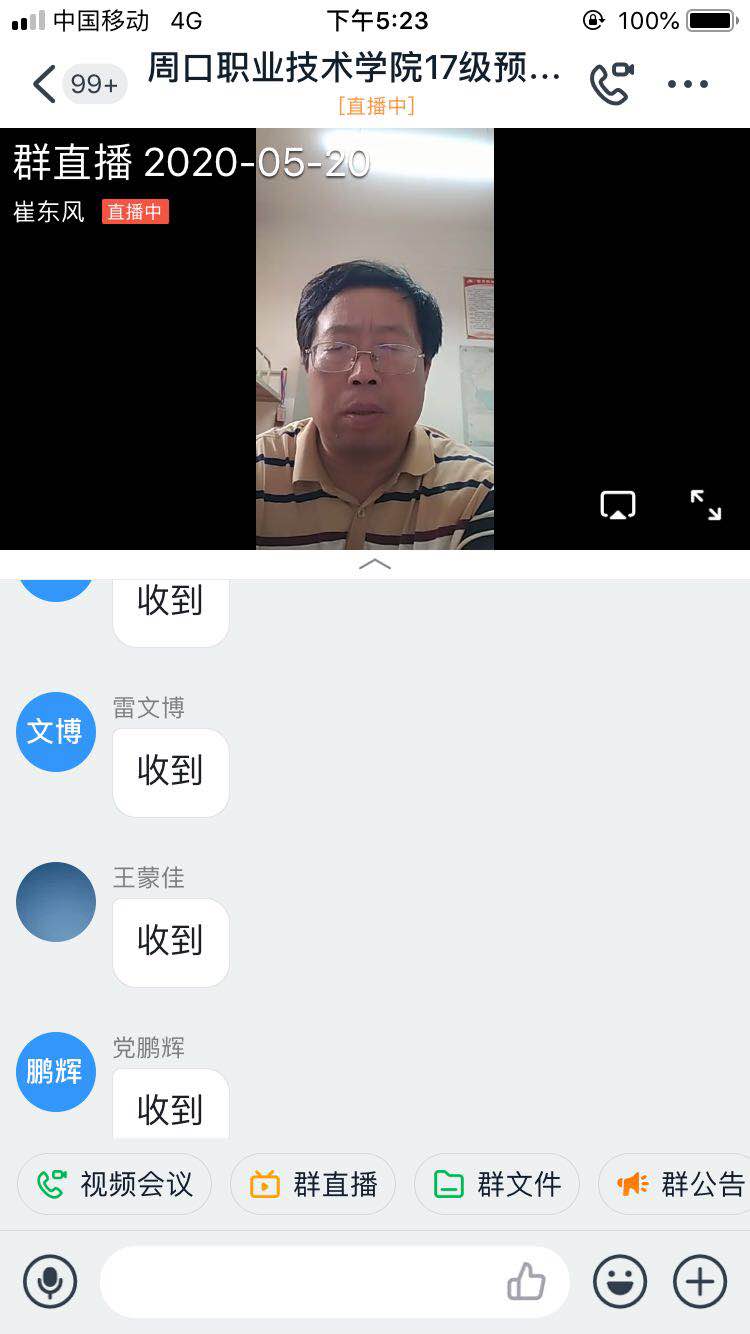 为全面了解17级预备党员一年来的思想动态,2020年5月20下午17:30,十大买球官方网站党总支书记崔东风利用钉钉群为17级预备党员上了一堂党课。副院长刘胜杰、学生管理办主任田伟华参加本次党课。