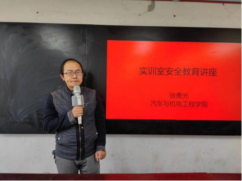 实训中心主任徐勇光同志从实验室安全的重要性、认识实验室的危险、常用实验设施和危险化学品的使用与防护以及如何做好实验室的安全工作等方面做了详细的讲述,并结合实验室多起事故案例,分析了导致实验室安全事故的各种因素。