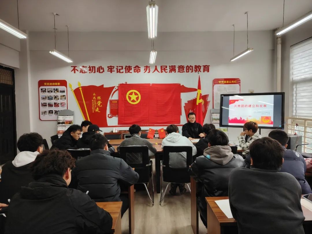 团课开始,团总支书记王亮指出本次课程围绕共青团的建立和发展进行讲述。首先团总书记王亮讲述了共青团首次建立的时间和地点等内容,接着又详细的讲解了共青团的发展历程以及名称的变化,并讲明“劳动、学习、团结”六字方针的意义;指出作为共青团员应该传递积极向上的价值观念,树立良好的行为榜样,努力为社会传播正能量;积极参加改革开放和社会主义现代化建设,在学习、劳动、工作及其他社会活动中起模范作用。